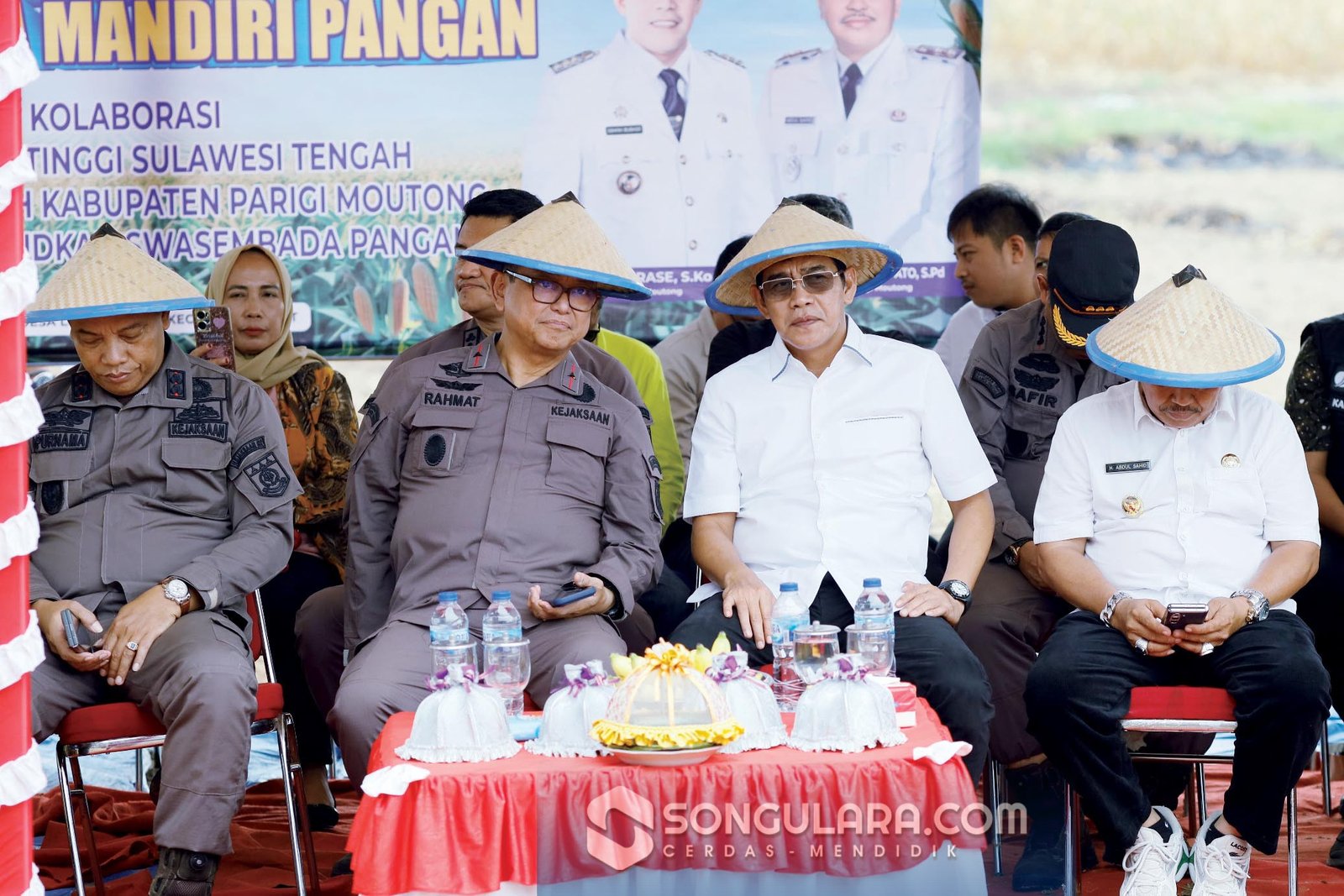 Bupati Parigi Moutong Erwin Burase (tengah) bersama Kepala Kejaksaan Tinggi Sulteng, Nuzul Rahmat R, SH, MH pada kegiatan Gerakan Tanam Jagung Jaksa Mandiri Pangan dan Desa Mandiri Pangan di Desa Lobu Mandiri, Kecamatan Parigi Barat, Kamis (12/2). Foto: RI/IST