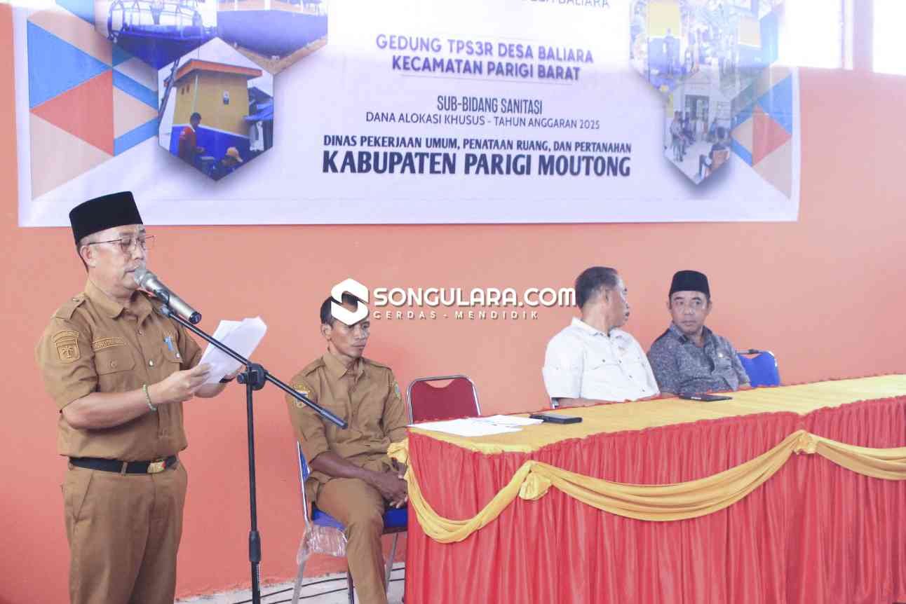 PARIGI MOUTONG – Mewakili Bupati Parigi Moutong, Asisten Pemerintahan dan Kesejahteraan Rakyat Sekretariat Daerah Kabupaten Parigi Moutong, Adrudin Nur, menghadiri kegiatan serah terima hasil pekerjaan pembangunan tangki septik skala individual dan Tempat Pengolahan Sampah Reduce, Reuse, Recycle (TPS3R) melalui Dana Alokasi Khusus (DAK) Tahun Anggaran 2025. Kegiatan tersebut berlangsung di Gedung TPS3R Desa Baliara, Kecamatan Parigi Barat, Senin (23/2/2026).