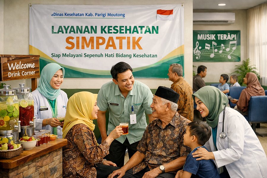 PARIGI MOUTONG – Dinas Kesehatan (Dinkes) Kabupaten Parigi Moutong, menyiapkan inovasi layanan kesehatan melalui program Layanan Kesehatan Simpatik (Siap Melayani Sepenuh Hati Bidang Kesehatan) dengan menghadirkan fasilitas welcome drink bagi pasien di Puskesmas.